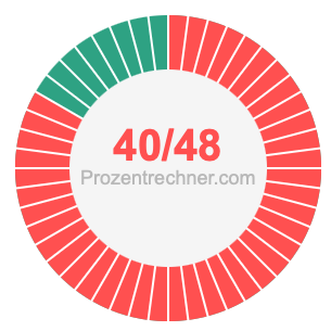 Was ist 40/48 in Prozent? Wie viel ist 40/48 in Prozent? Wie viel Prozent sind 40/48? Hier erklären und zeigen wir Ihnen, wie Sie 40/48 in Prozent berechnen und umrechnen können.