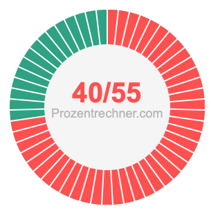Was ist 40/55 in Prozent? Wie viel ist 40/55 in Prozent? Wie viel Prozent sind 40/55? Hier erklären und zeigen wir Ihnen, wie Sie 40/55 in Prozent berechnen und umrechnen können.