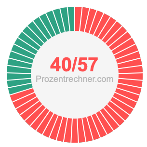 Was ist 40/57 in Prozent? Wie viel ist 40/57 in Prozent? Wie viel Prozent sind 40/57? Hier erklären und zeigen wir Ihnen, wie Sie 40/57 in Prozent berechnen und umrechnen können.