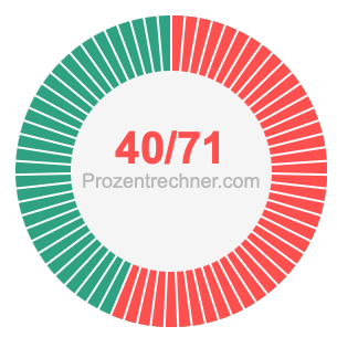 Was ist 40/71 in Prozent? Wie viel ist 40/71 in Prozent? Wie viel Prozent sind 40/71? Hier erklären und zeigen wir Ihnen, wie Sie 40/71 in Prozent berechnen und umrechnen können.