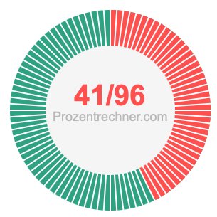 Was ist 41/96 in Prozent? Wie viel ist 41/96 in Prozent? Wie viel Prozent sind 41/96? Hier erklären und zeigen wir Ihnen, wie Sie 41/96 in Prozent berechnen und umrechnen können.