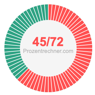 Was ist 45/72 in Prozent? Wie viel ist 45/72 in Prozent? Wie viel Prozent sind 45/72? Hier erklären und zeigen wir Ihnen, wie Sie 45/72 in Prozent berechnen und umrechnen können.