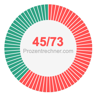 Was ist 45/73 in Prozent? Wie viel ist 45/73 in Prozent? Wie viel Prozent sind 45/73? Hier erklären und zeigen wir Ihnen, wie Sie 45/73 in Prozent berechnen und umrechnen können.