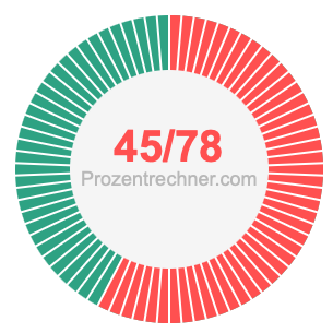 Was ist 45/78 in Prozent? Wie viel ist 45/78 in Prozent? Wie viel Prozent sind 45/78? Hier erklären und zeigen wir Ihnen, wie Sie 45/78 in Prozent berechnen und umrechnen können.