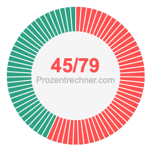 Was ist 45/79 in Prozent? Wie viel ist 45/79 in Prozent? Wie viel Prozent sind 45/79? Hier erklären und zeigen wir Ihnen, wie Sie 45/79 in Prozent berechnen und umrechnen können.