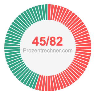 Was ist 45/82 in Prozent? Wie viel ist 45/82 in Prozent? Wie viel Prozent sind 45/82? Hier erklären und zeigen wir Ihnen, wie Sie 45/82 in Prozent berechnen und umrechnen können.