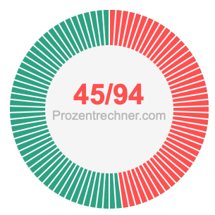 Was ist 45/94 in Prozent? Wie viel ist 45/94 in Prozent? Wie viel Prozent sind 45/94? Hier erklären und zeigen wir Ihnen, wie Sie 45/94 in Prozent berechnen und umrechnen können.