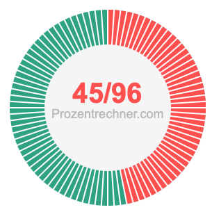 Was ist 45/96 in Prozent? Wie viel ist 45/96 in Prozent? Wie viel Prozent sind 45/96? Hier erklären und zeigen wir Ihnen, wie Sie 45/96 in Prozent berechnen und umrechnen können.