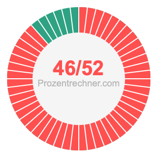 Was ist 46/52 in Prozent? Wie viel ist 46/52 in Prozent? Wie viel Prozent sind 46/52? Hier erklären und zeigen wir Ihnen, wie Sie 46/52 in Prozent berechnen und umrechnen können.