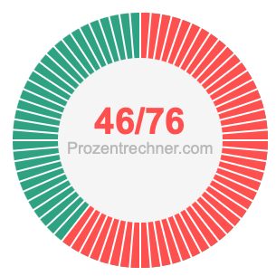 Was ist 46/76 in Prozent? Wie viel ist 46/76 in Prozent? Wie viel Prozent sind 46/76? Hier erklären und zeigen wir Ihnen, wie Sie 46/76 in Prozent berechnen und umrechnen können.