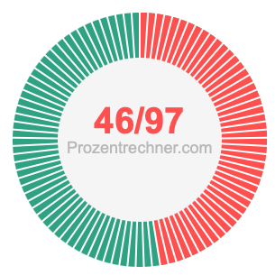 Was ist 46/97 in Prozent? Wie viel ist 46/97 in Prozent? Wie viel Prozent sind 46/97? Hier erklären und zeigen wir Ihnen, wie Sie 46/97 in Prozent berechnen und umrechnen können.
