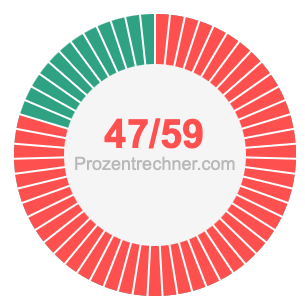 Was ist 47/59 in Prozent? Wie viel ist 47/59 in Prozent? Wie viel Prozent sind 47/59? Hier erklären und zeigen wir Ihnen, wie Sie 47/59 in Prozent berechnen und umrechnen können.