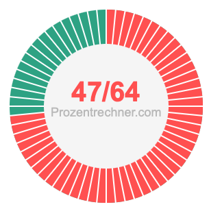 Was ist 47/64 in Prozent? Wie viel ist 47/64 in Prozent? Wie viel Prozent sind 47/64? Hier erklären und zeigen wir Ihnen, wie Sie 47/64 in Prozent berechnen und umrechnen können.