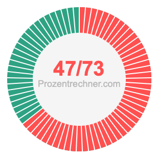 Außerdem werden wir den Bruch 47/73 in einem Kreisdiagramm und 47/73 als Prozent in einem Kreisdiagramm veranschaulichen.