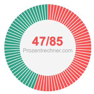 Was ist 47/85 in Prozent? Wie viel ist 47/85 in Prozent? Wie viel Prozent sind 47/85? Hier erklären und zeigen wir Ihnen, wie Sie 47/85 in Prozent berechnen und umrechnen können.
