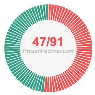 Was ist 47/91 in Prozent? Wie viel ist 47/91 in Prozent? Wie viel Prozent sind 47/91? Hier erklären und zeigen wir Ihnen, wie Sie 47/91 in Prozent berechnen und umrechnen können.