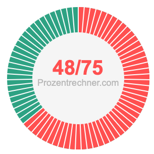 Was ist 48/75 in Prozent? Wie viel ist 48/75 in Prozent? Wie viel Prozent sind 48/75? Hier erklären und zeigen wir Ihnen, wie Sie 48/75 in Prozent berechnen und umrechnen können.