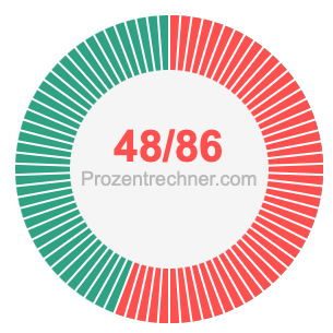 Was ist 48/86 in Prozent? Wie viel ist 48/86 in Prozent? Wie viel Prozent sind 48/86? Hier erklären und zeigen wir Ihnen, wie Sie 48/86 in Prozent berechnen und umrechnen können.