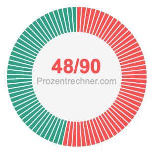 Was ist 48/90 in Prozent? Wie viel ist 48/90 in Prozent? Wie viel Prozent sind 48/90? Hier erklären und zeigen wir Ihnen, wie Sie 48/90 in Prozent berechnen und umrechnen können.