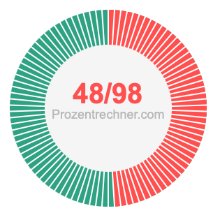 Was ist 48/98 in Prozent? Wie viel ist 48/98 in Prozent? Wie viel Prozent sind 48/98? Hier erklären und zeigen wir Ihnen, wie Sie 48/98 in Prozent berechnen und umrechnen können.