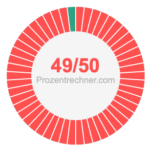 Was ist 49/50 in Prozent? Wie viel ist 49/50 in Prozent? Wie viel Prozent sind 49/50? Hier erklären und zeigen wir Ihnen, wie Sie 49/50 in Prozent berechnen und umrechnen können.