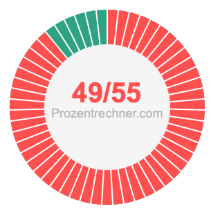 Was ist 49/55 in Prozent? Wie viel ist 49/55 in Prozent? Wie viel Prozent sind 49/55? Hier erklären und zeigen wir Ihnen, wie Sie 49/55 in Prozent berechnen und umrechnen können.