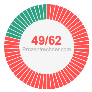 Was ist 49/62 in Prozent? Wie viel ist 49/62 in Prozent? Wie viel Prozent sind 49/62? Hier erklären und zeigen wir Ihnen, wie Sie 49/62 in Prozent berechnen und umrechnen können.