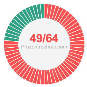 Was ist 49/64 in Prozent? Wie viel ist 49/64 in Prozent? Wie viel Prozent sind 49/64? Hier erklären und zeigen wir Ihnen, wie Sie 49/64 in Prozent berechnen und umrechnen können.