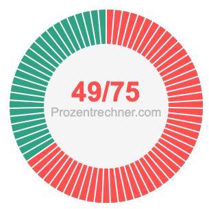 Was ist 49/75 in Prozent? Wie viel ist 49/75 in Prozent? Wie viel Prozent sind 49/75? Hier erklären und zeigen wir Ihnen, wie Sie 49/75 in Prozent berechnen und umrechnen können.