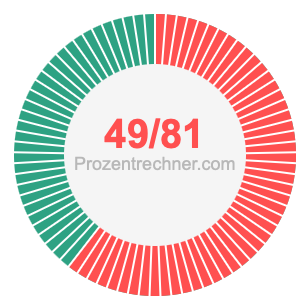 Was ist 49/81 in Prozent? Wie viel ist 49/81 in Prozent? Wie viel Prozent sind 49/81? Hier erklären und zeigen wir Ihnen, wie Sie 49/81 in Prozent berechnen und umrechnen können.