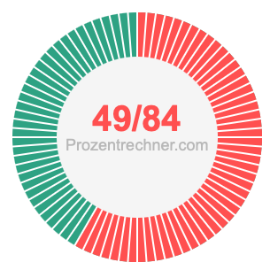 Was ist 49/84 in Prozent? Wie viel ist 49/84 in Prozent? Wie viel Prozent sind 49/84? Hier erklären und zeigen wir Ihnen, wie Sie 49/84 in Prozent berechnen und umrechnen können.
