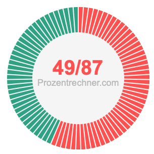 Was ist 49/87 in Prozent? Wie viel ist 49/87 in Prozent? Wie viel Prozent sind 49/87? Hier erklären und zeigen wir Ihnen, wie Sie 49/87 in Prozent berechnen und umrechnen können.