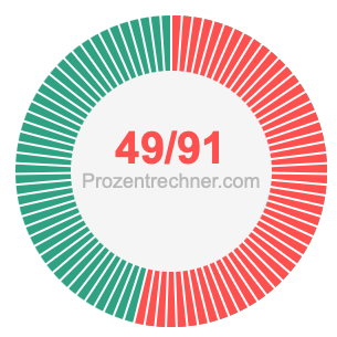Was ist 49/91 in Prozent? Wie viel ist 49/91 in Prozent? Wie viel Prozent sind 49/91? Hier erklären und zeigen wir Ihnen, wie Sie 49/91 in Prozent berechnen und umrechnen können.