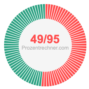 Was ist 49/95 in Prozent? Wie viel ist 49/95 in Prozent? Wie viel Prozent sind 49/95? Hier erklären und zeigen wir Ihnen, wie Sie 49/95 in Prozent berechnen und umrechnen können.