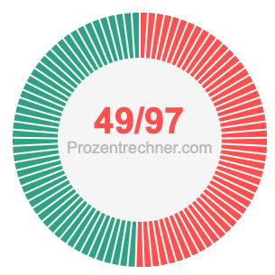 Was ist 49/97 in Prozent? Wie viel ist 49/97 in Prozent? Wie viel Prozent sind 49/97? Hier erklären und zeigen wir Ihnen, wie Sie 49/97 in Prozent berechnen und umrechnen können.