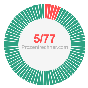 Was ist 5/77 in Prozent? Wie viel ist 5/77 in Prozent? Wie viel Prozent sind 5/77? Hier erklären und zeigen wir Ihnen, wie Sie 5/77 in Prozent berechnen und umrechnen können.