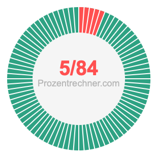 Was ist 5/84 in Prozent? Wie viel ist 5/84 in Prozent? Wie viel Prozent sind 5/84? Hier erklären und zeigen wir Ihnen, wie Sie 5/84 in Prozent berechnen und umrechnen können.