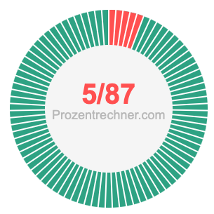 Was ist 5/87 in Prozent? Wie viel ist 5/87 in Prozent? Wie viel Prozent sind 5/87? Hier erklären und zeigen wir Ihnen, wie Sie 5/87 in Prozent berechnen und umrechnen können.