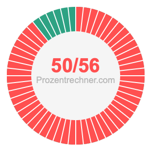 Was ist 50/56 in Prozent? Wie viel ist 50/56 in Prozent? Wie viel Prozent sind 50/56? Hier erklären und zeigen wir Ihnen, wie Sie 50/56 in Prozent berechnen und umrechnen können.