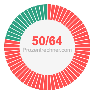 Was ist 50/64 in Prozent? Wie viel ist 50/64 in Prozent? Wie viel Prozent sind 50/64? Hier erklären und zeigen wir Ihnen, wie Sie 50/64 in Prozent berechnen und umrechnen können.