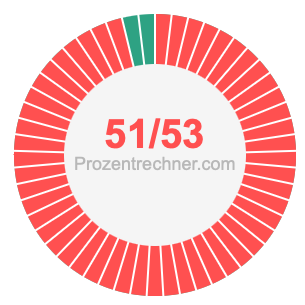 Was ist 51/53 in Prozent? Wie viel ist 51/53 in Prozent? Wie viel Prozent sind 51/53? Hier erklären und zeigen wir Ihnen, wie Sie 51/53 in Prozent berechnen und umrechnen können.