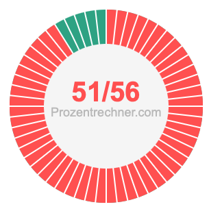 Was ist 51/56 in Prozent? Wie viel ist 51/56 in Prozent? Wie viel Prozent sind 51/56? Hier erklären und zeigen wir Ihnen, wie Sie 51/56 in Prozent berechnen und umrechnen können.