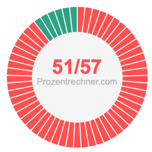 Was ist 51/57 in Prozent? Wie viel ist 51/57 in Prozent? Wie viel Prozent sind 51/57? Hier erklären und zeigen wir Ihnen, wie Sie 51/57 in Prozent berechnen und umrechnen können.