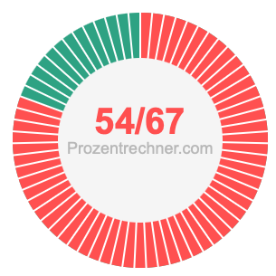 Was ist 54/67 in Prozent? Wie viel ist 54/67 in Prozent? Wie viel Prozent sind 54/67? Hier erklären und zeigen wir Ihnen, wie Sie 54/67 in Prozent berechnen und umrechnen können.