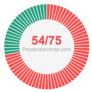 Was ist 54/75 in Prozent? Wie viel ist 54/75 in Prozent? Wie viel Prozent sind 54/75? Hier erklären und zeigen wir Ihnen, wie Sie 54/75 in Prozent berechnen und umrechnen können.