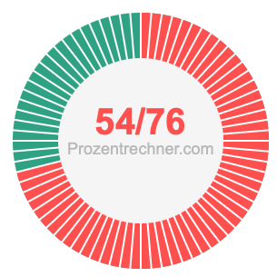 Was ist 54/76 in Prozent? Wie viel ist 54/76 in Prozent? Wie viel Prozent sind 54/76? Hier erklären und zeigen wir Ihnen, wie Sie 54/76 in Prozent berechnen und umrechnen können.