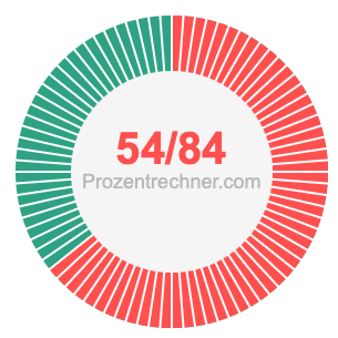 54/84 ist ein Bruch, der 54 von 84 bedeutet, und Prozent bedeutet etwas von 100. Wir können also die folgende Gleichung aufstellen, um 54/84 als Prozentzahl zu erhalten: