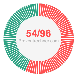 Was ist 54/96 in Prozent? Wie viel ist 54/96 in Prozent? Wie viel Prozent sind 54/96? Hier erklären und zeigen wir Ihnen, wie Sie 54/96 in Prozent berechnen und umrechnen können.