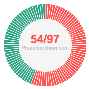 Was ist 54/97 in Prozent? Wie viel ist 54/97 in Prozent? Wie viel Prozent sind 54/97? Hier erklären und zeigen wir Ihnen, wie Sie 54/97 in Prozent berechnen und umrechnen können.