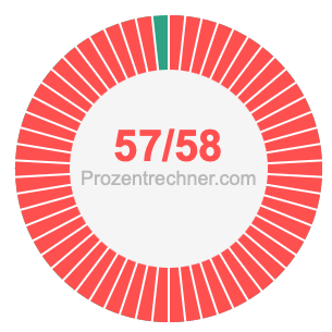 Was ist 57/58 in Prozent? Wie viel ist 57/58 in Prozent? Wie viel Prozent sind 57/58? Hier erklären und zeigen wir Ihnen, wie Sie 57/58 in Prozent berechnen und umrechnen können.